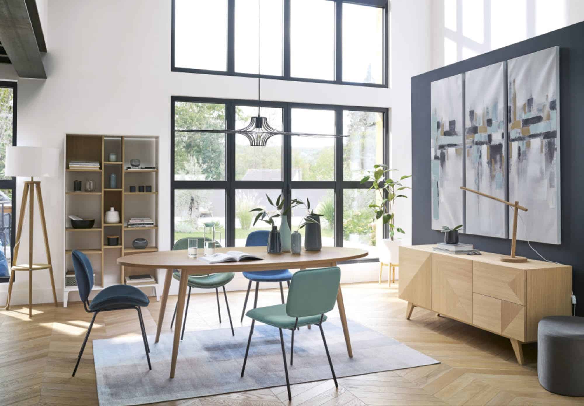 Para ocupar más espacio en horizontal y acompañar la longitud del mueble, elige una imagen que se componga por tres piezas. Esto genera un look moderno y distintivo.