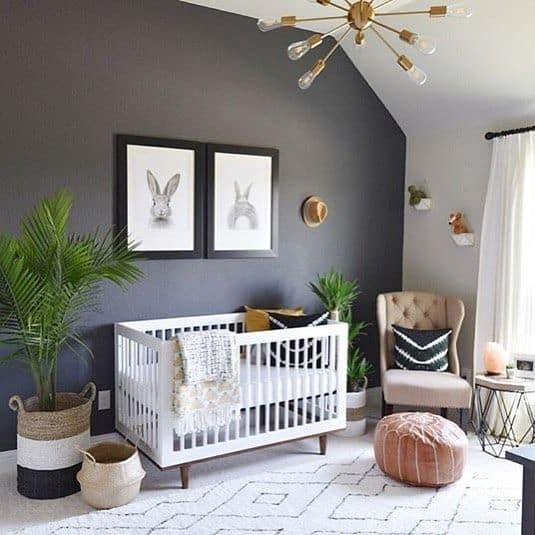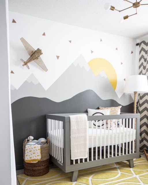 Una forma muy fácil y con estilo para agregar color a un cuarto de bebé, es creando una pared focal. La pared detrás de la cuna en general es la más elegida, pudiendo agregar decoración en colores contrastantes para un efecto visual más interesante. Ten en cuenta que la pintura que uses sea ecológica o al agua, para que no desprenda tóxicos en el ambiente.