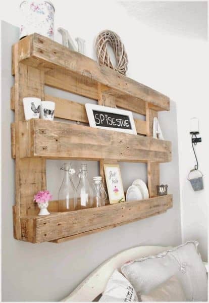 Puedes aprovechar un palet, cortarlo en dos o tres partes y crear varios estantes para decorar y organizar tu espacio. Es una pieza muy funcional ya que tienes la superficie de arriba para apoyar distintas cosas, pero también los huecos del medio.